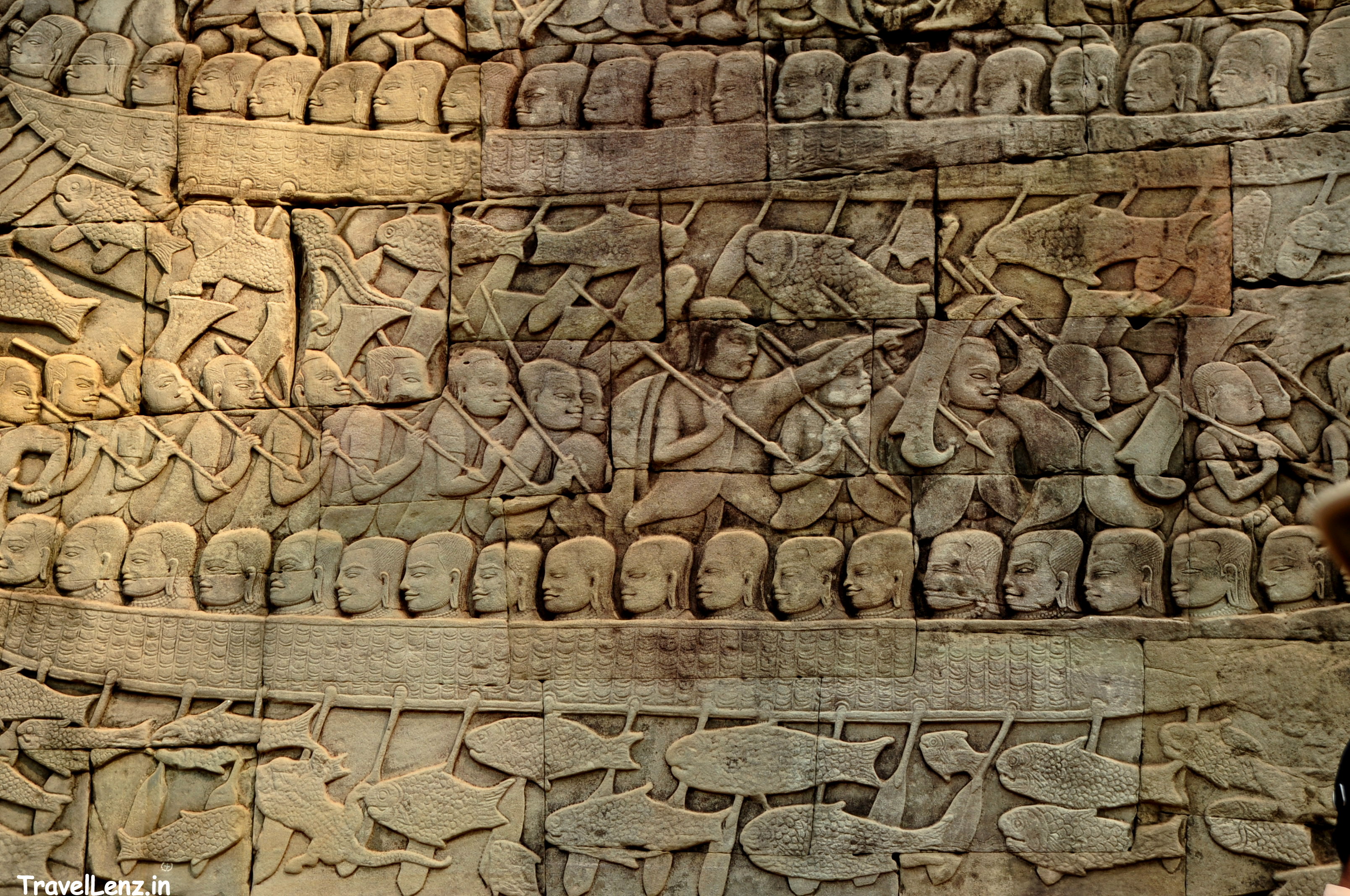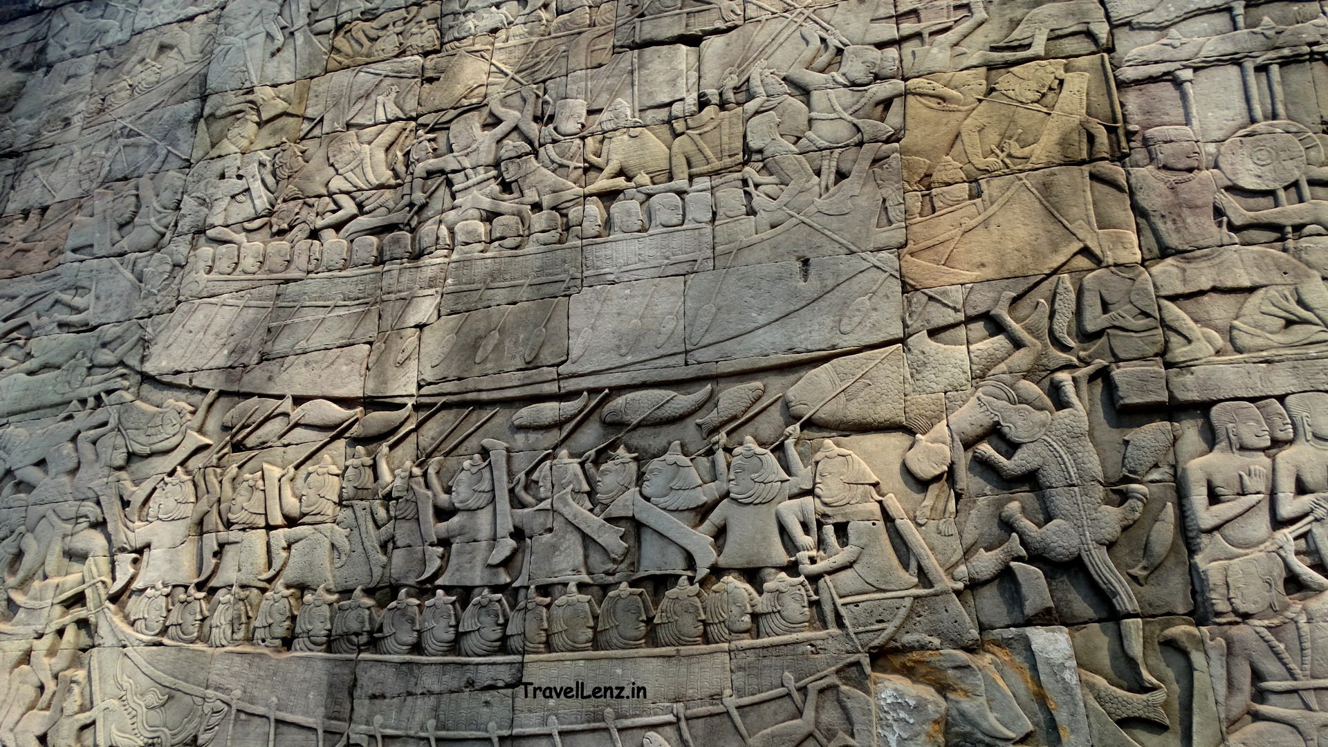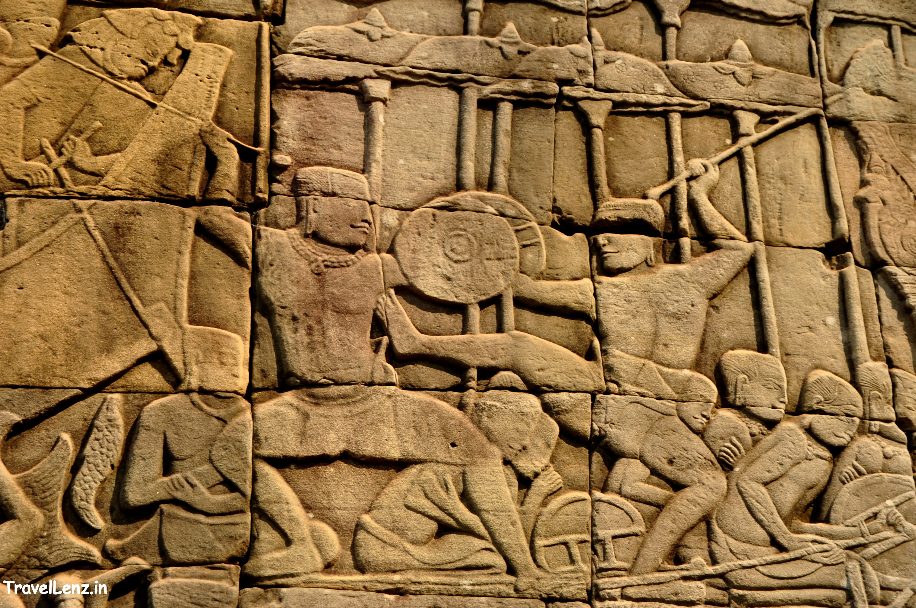 The bas-reliefs on both the galleries contained scenes from everyday life and depictions from the battlefields, mainly King Jayavarman’s military victories.