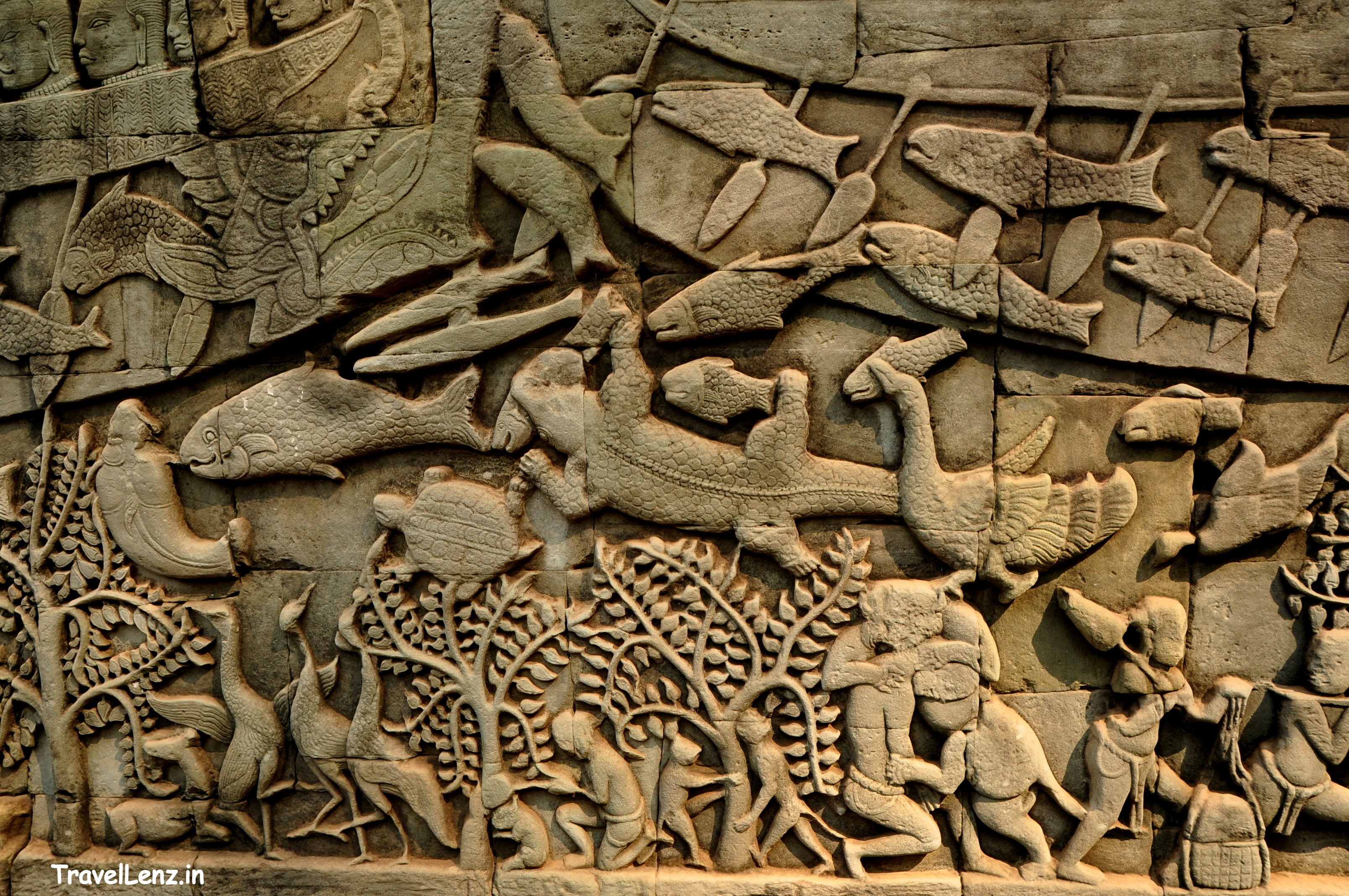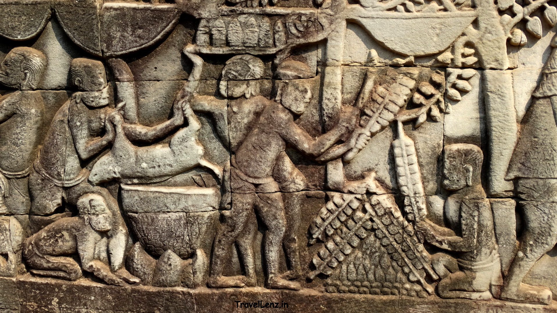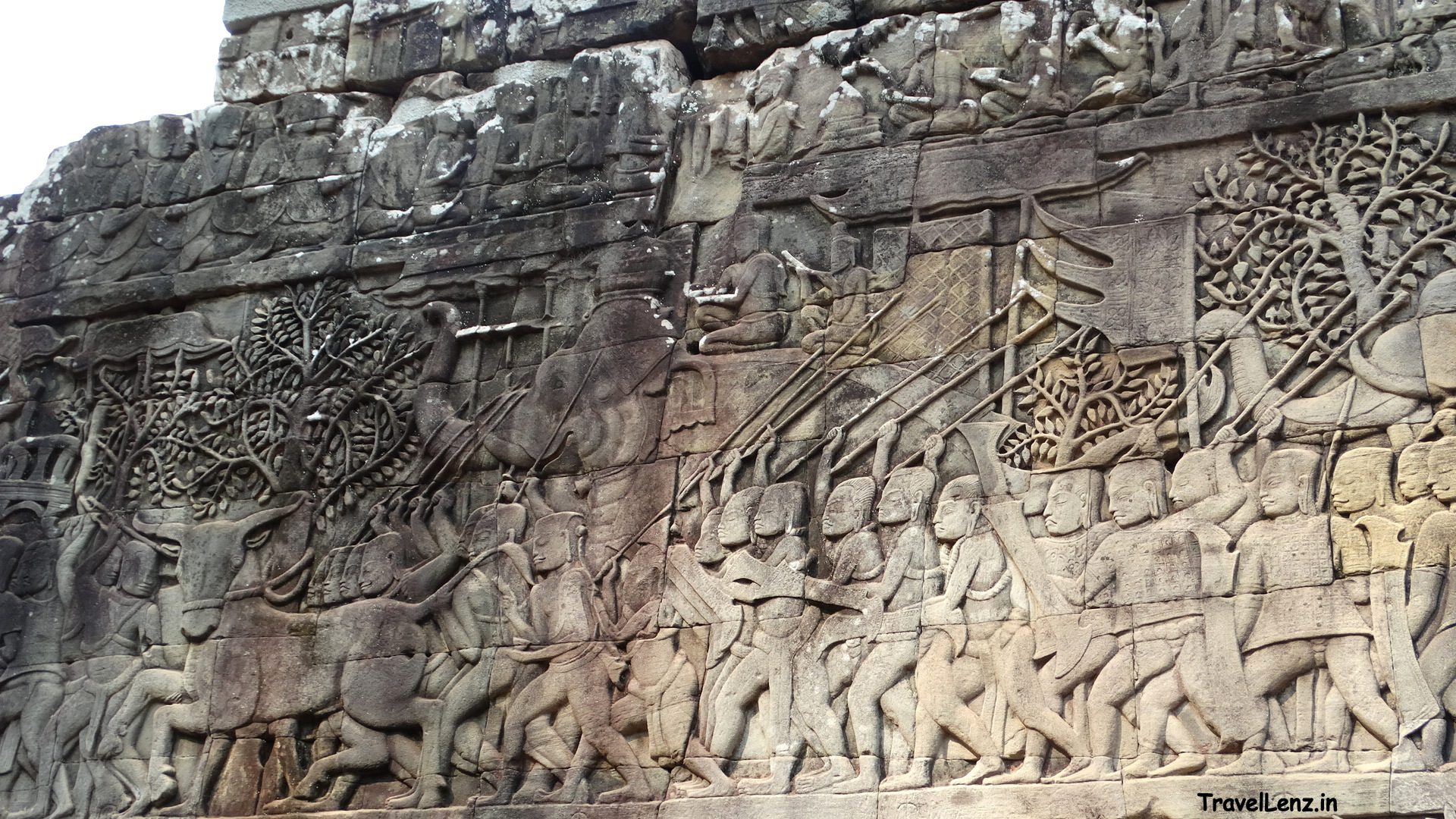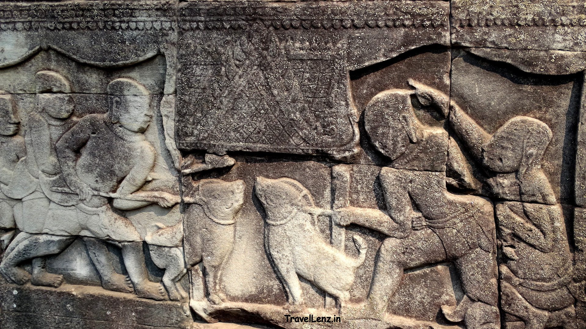 The bas-reliefs on both the galleries contained scenes from everyday life and depictions from the battlefields, mainly King Jayavarman’s military victories.