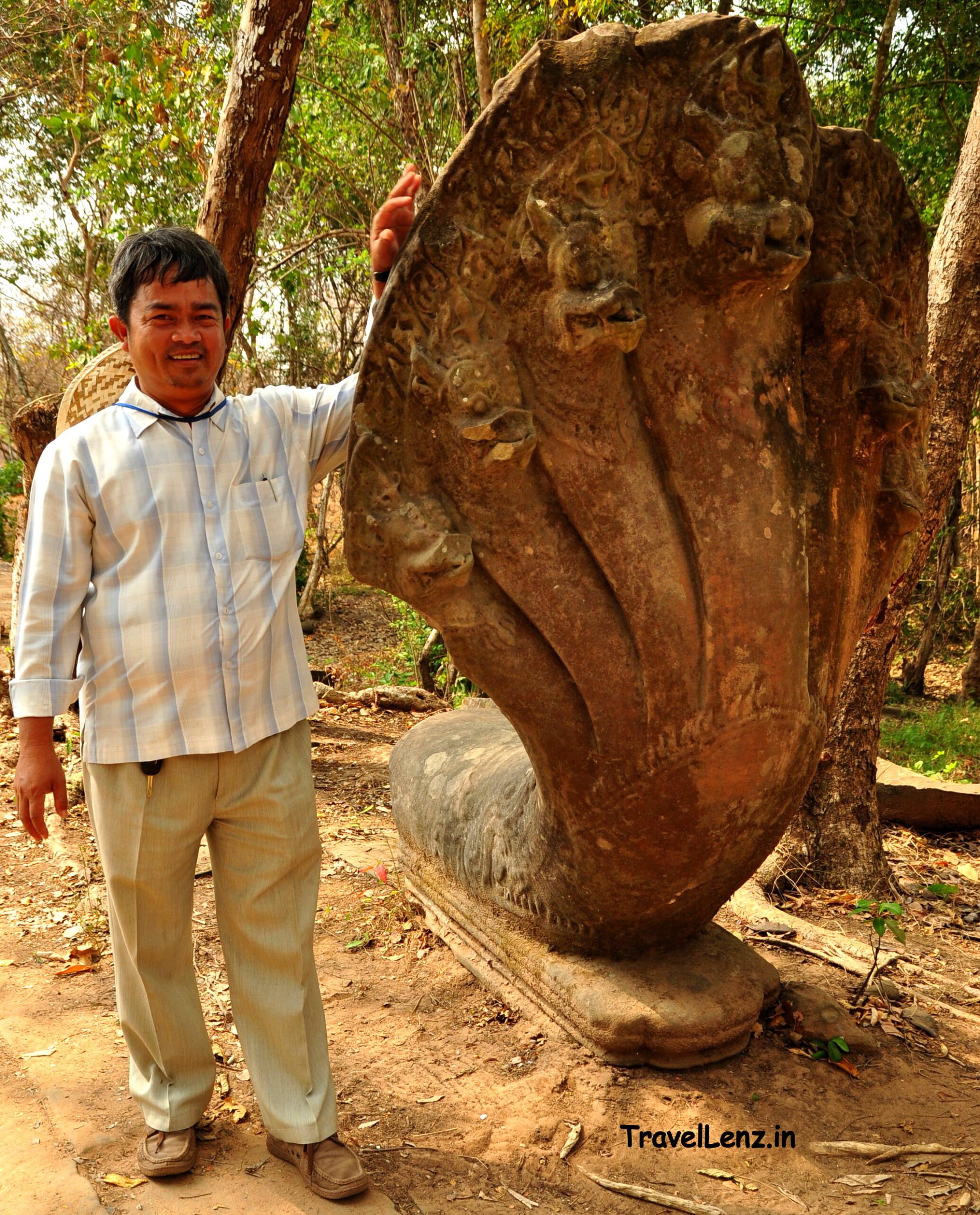 Tes posing with a Naga head at Beng Mealea