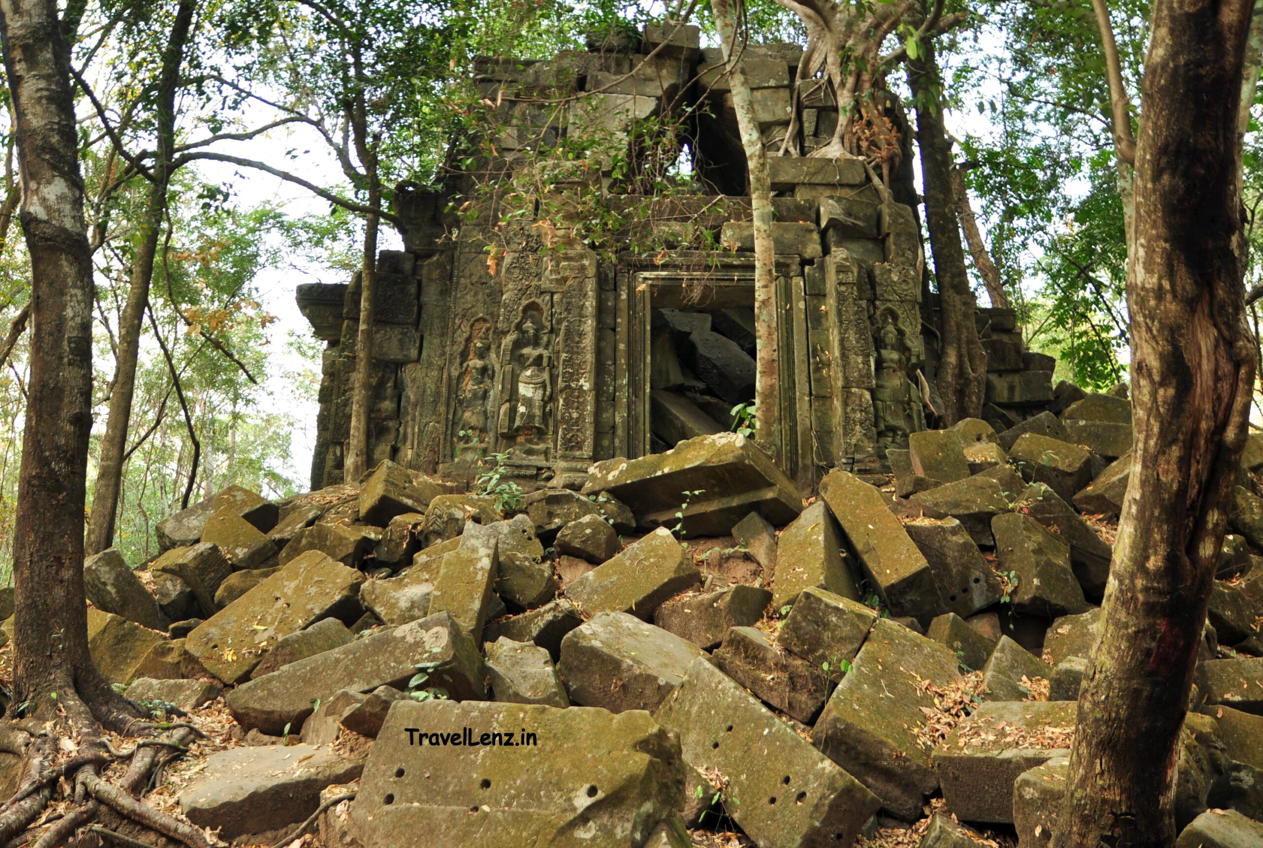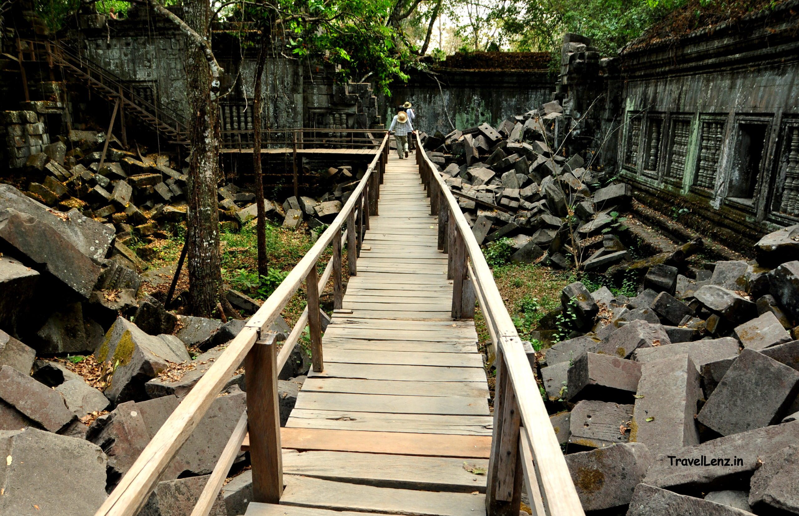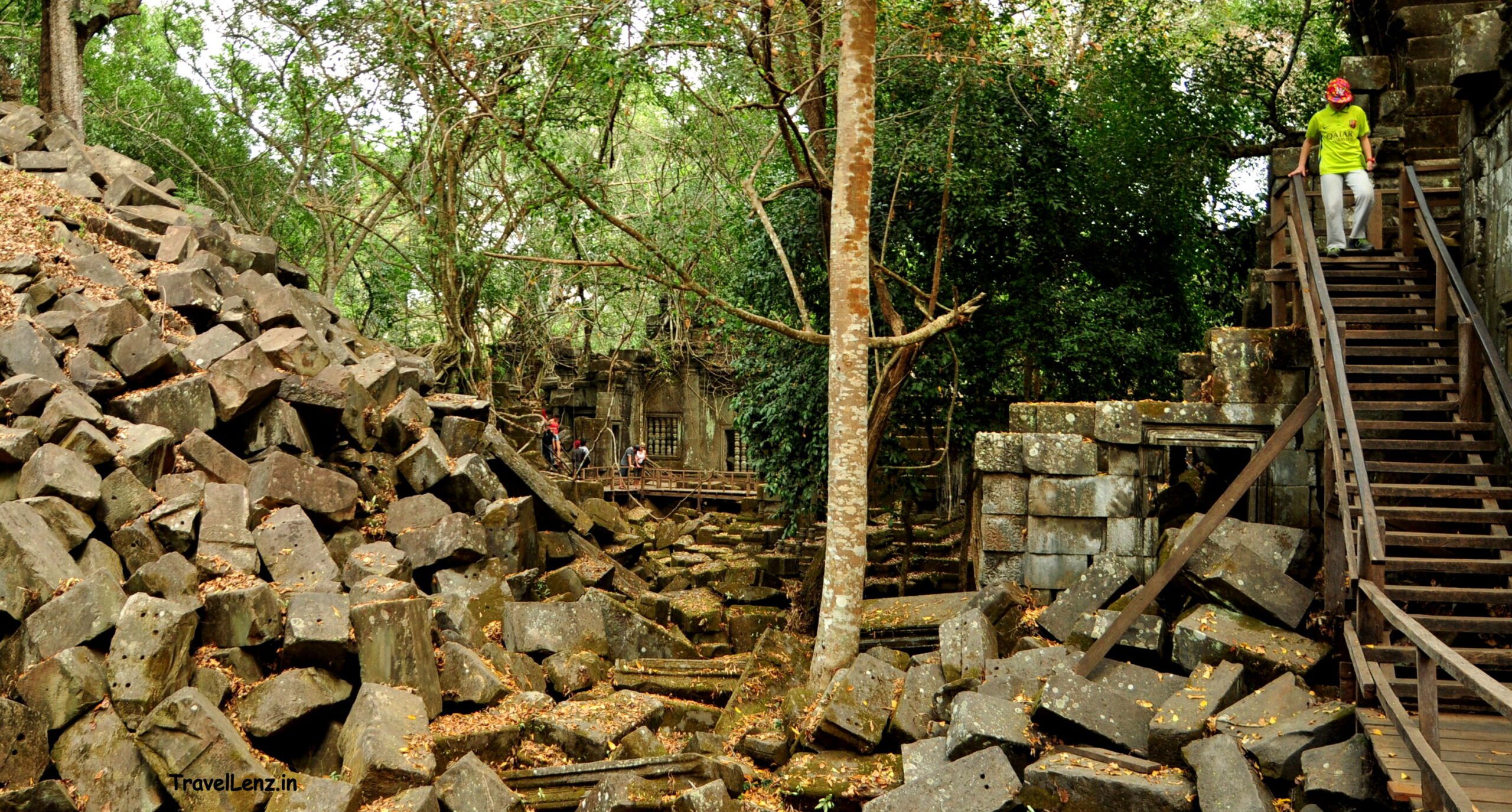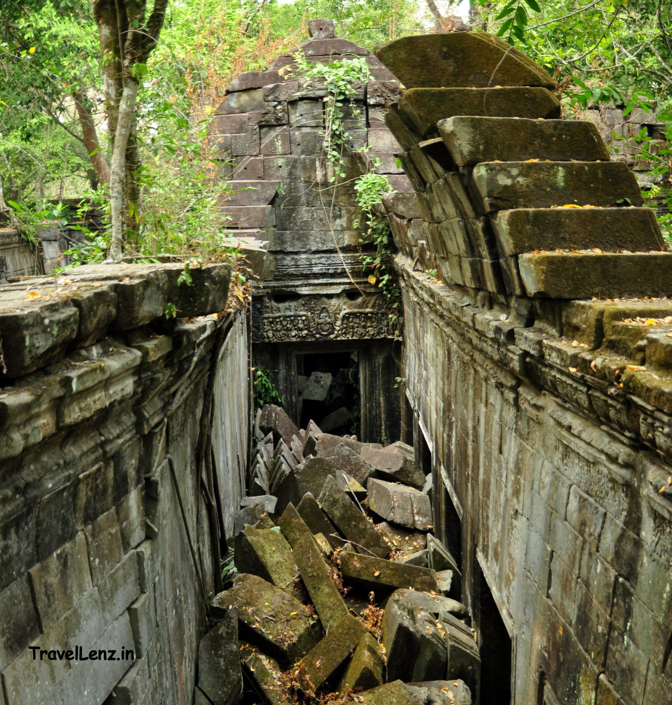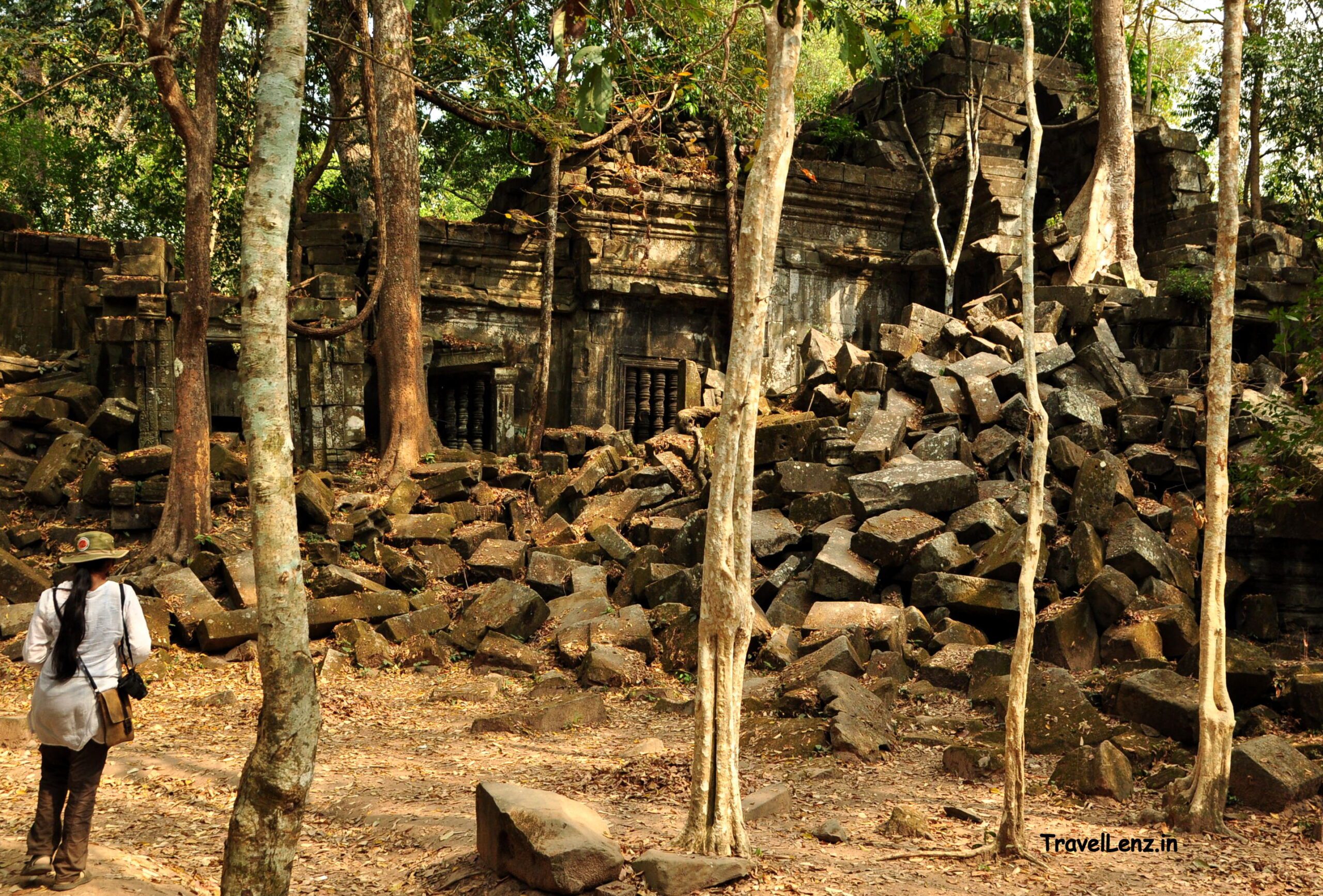 A pile of collapsed stone blocks stood at the end of the causeway. This used to be one of the gopuras of Beng Mealea, but now reduced to a pile of rubble.