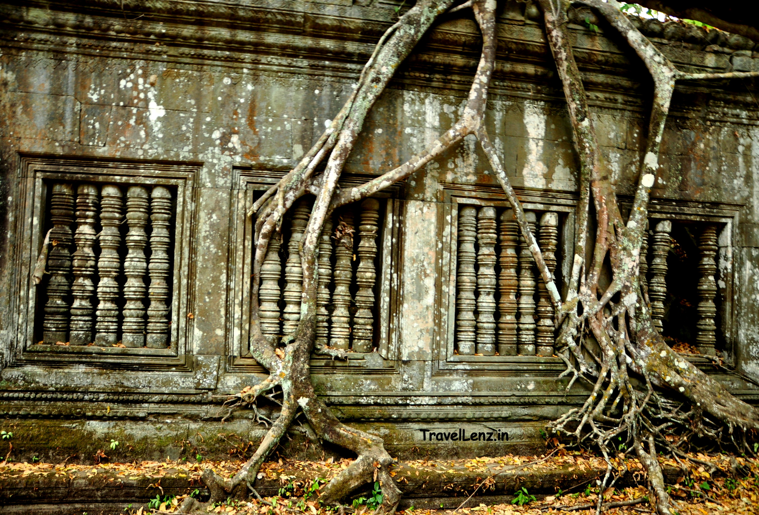 One of the temple libraries, which at one time must have held sacred manuscripts. Now vines and roots cling on desperately