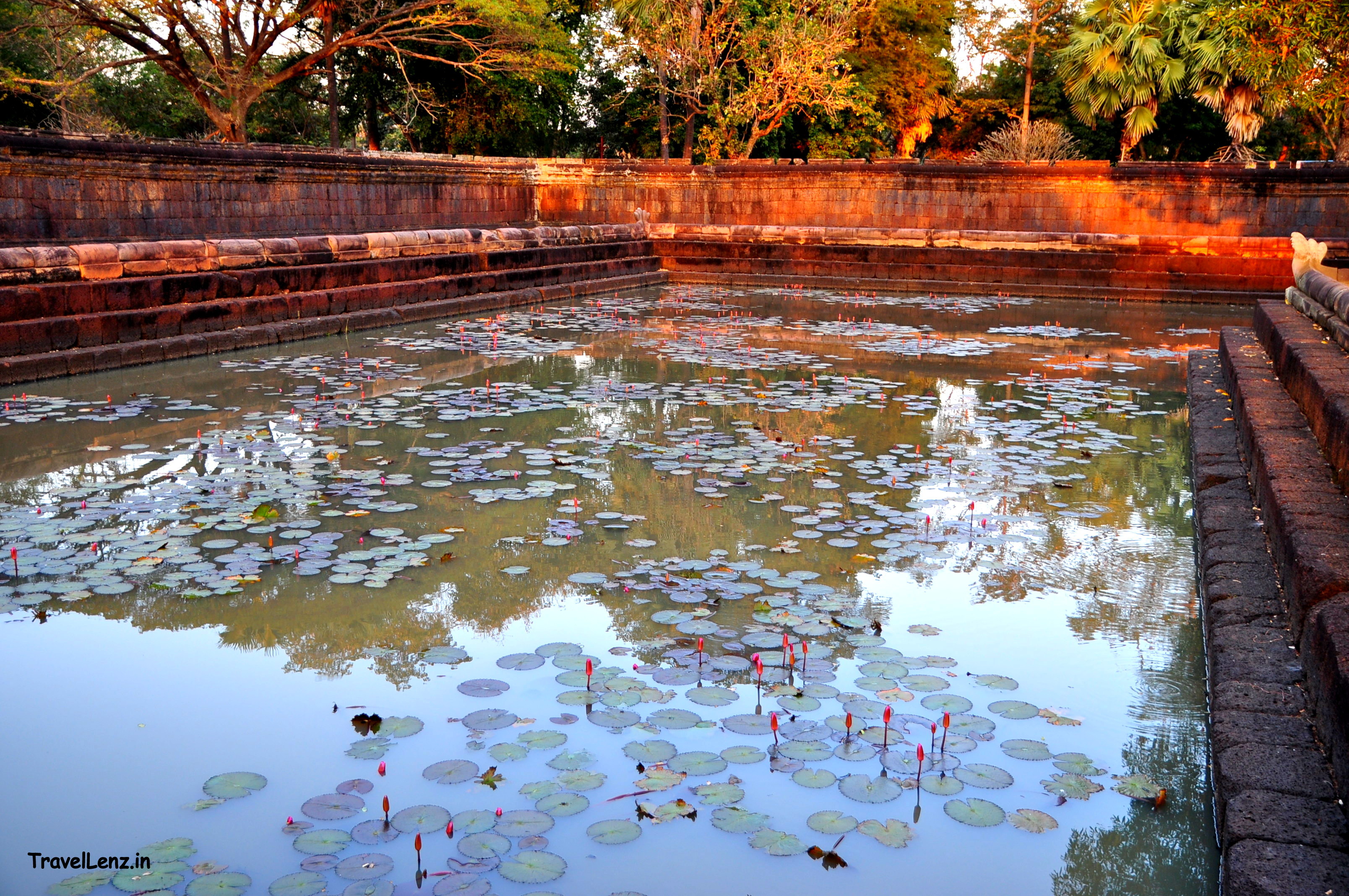 Each pond had laterite steps leading down to the water. Perfectly blending with the more subtle features of the lotus pond were 5-headed Naga balustrades enclosing the pond. The pond must have been used in ancient times to cleanse the visitors before they entered the temple