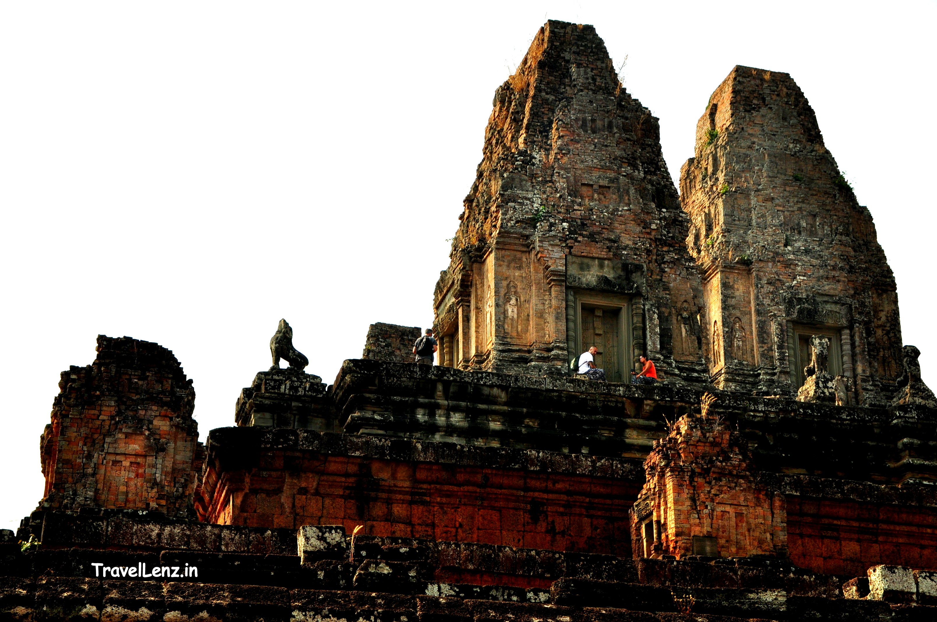 Pre Rup is also a popular place for sunset viewing and gets pretty crowded in the evenings. We imagined how majestic the temple might have looked in the setting sun, with its laterite bricks accentuating the colour on the temple walls and its terraces and platforms guarded by stone lions. Now the temple lay in ruins – a  little more than piles of red stone blocks.