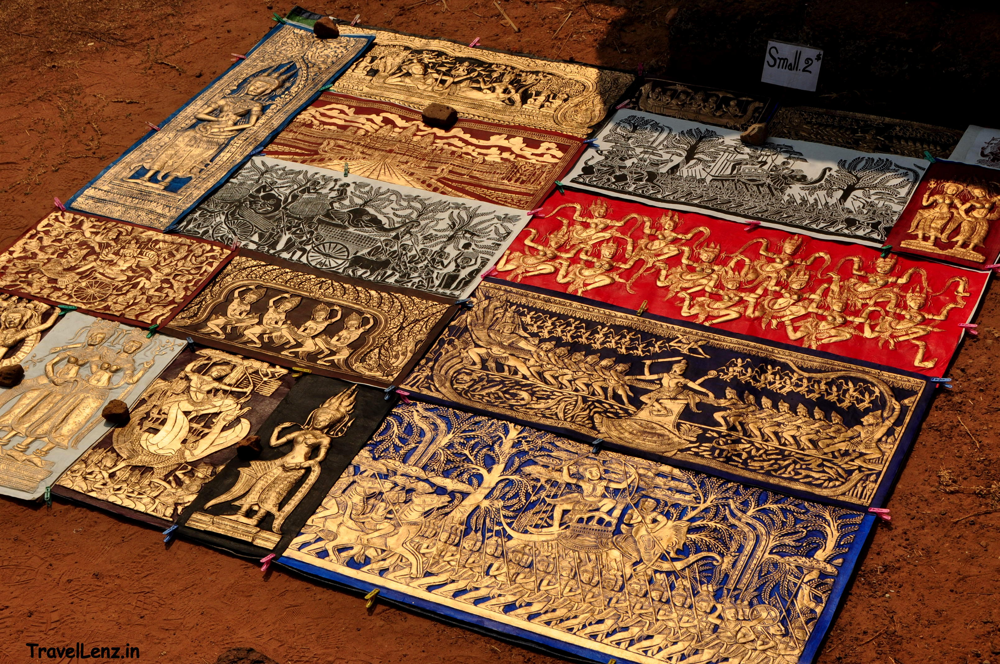 At the entrance, we had found a few stalls where locals were selling souvenirs. Other than the silk scarves, clothes jewelry, wooden and stone carvings,  what caught our eyes were paintings etched on colourful thick papers. We had to buy one (the small maroon and golden piece on the right-hand top position now adorns our drawing room wall).