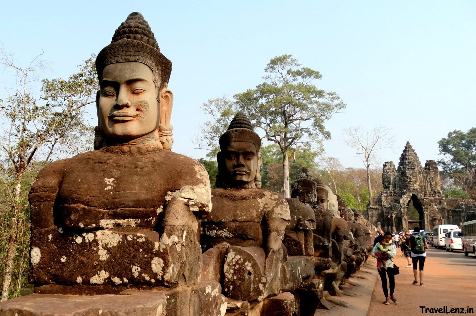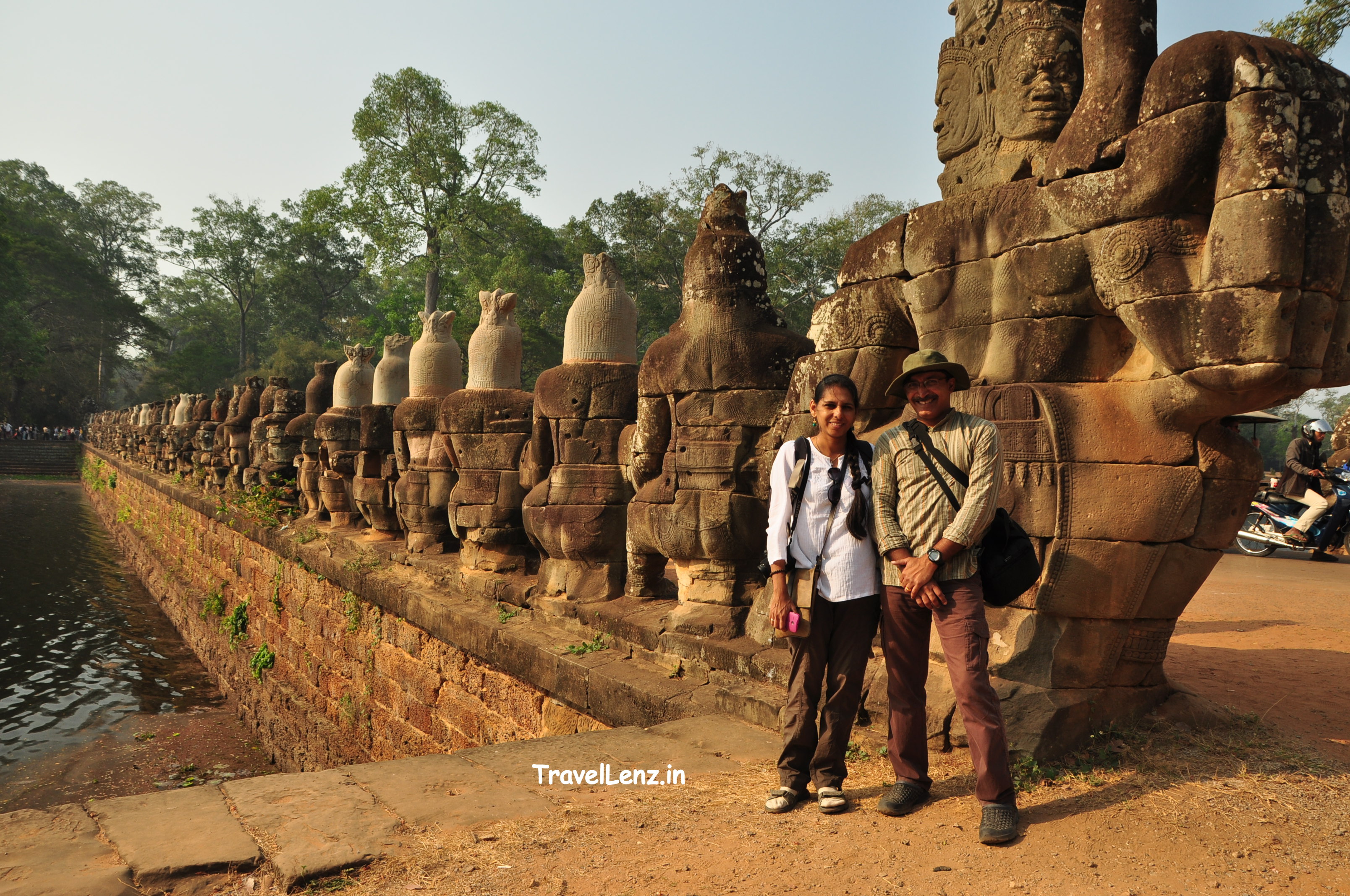 Our first stop was even before we realised we had reached our first Angkor monument. Actually, we hadn’t. As we got out of the car, we found ourselves staring at a bridge like no other, leading up to a gate tower of the likes we hadn’t seen before.