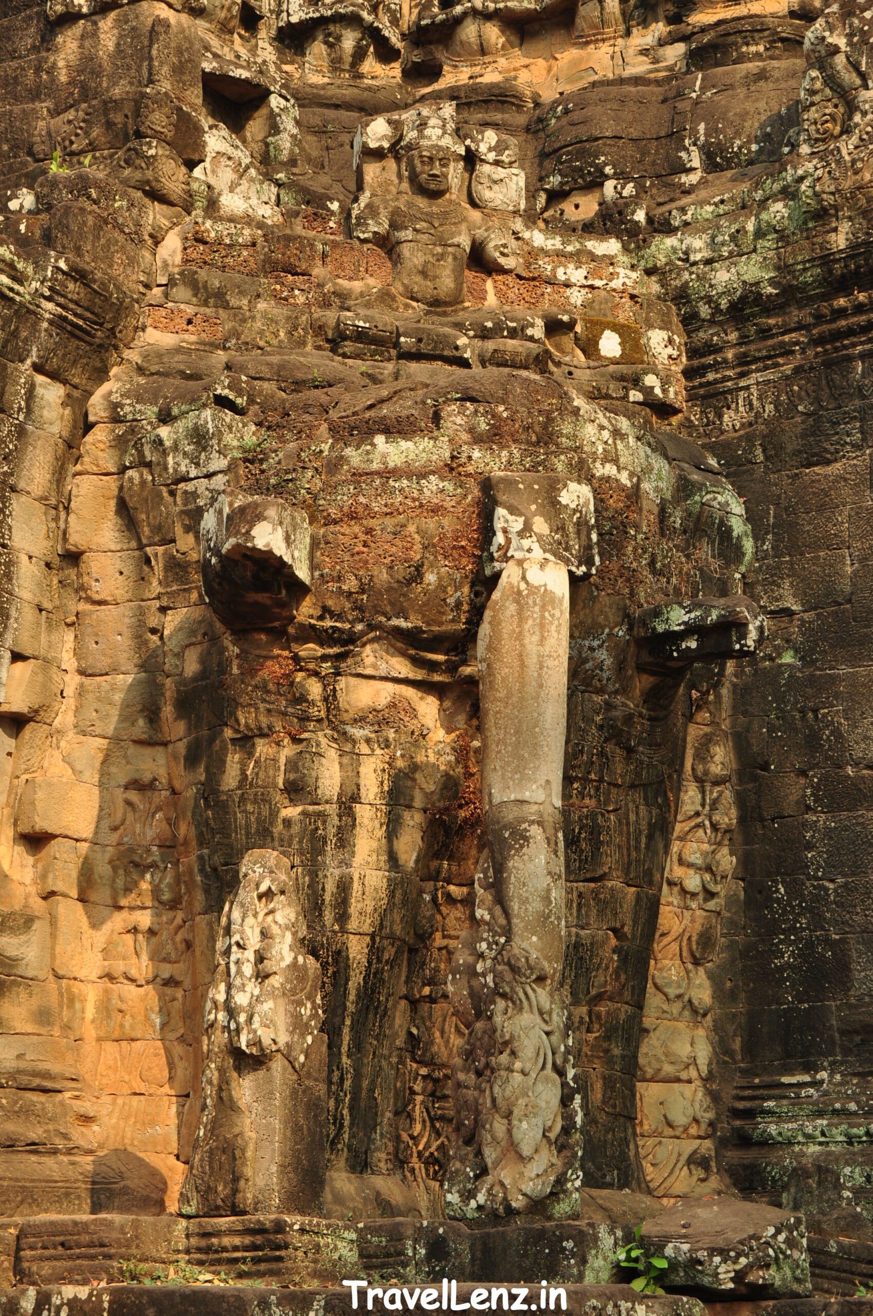 Literally meaning – the Great City – Angkor Thom was the last capital city of the Khmer empire. The old capital, Yasodharapura, was destroyed by the Champa invaders and King Jayavarman VII wanted his new capital to be fortified. For that, he built an 8 m high wall around the 9 sq km city complex and encircled it by a 100-meter wide moat. He also built five gates with impressive face towers providing access to the city – four of the gates pointing towards the four cardinal directions and a fifth gate, an extra gate on the eastern wall, about 500 m north of the main eastern gate.