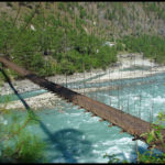 We climbed up to the village, now following the right path, and were on our way. Another punishing flight of steps and we were at another bridge – not root this time but iron. The chasm was much wider and a bigger river rushed below. The gentle roll of the bridge, increasing with every additional person who gets on it, and a glance below is not exactly what the faint-hearted would call a holiday experience!