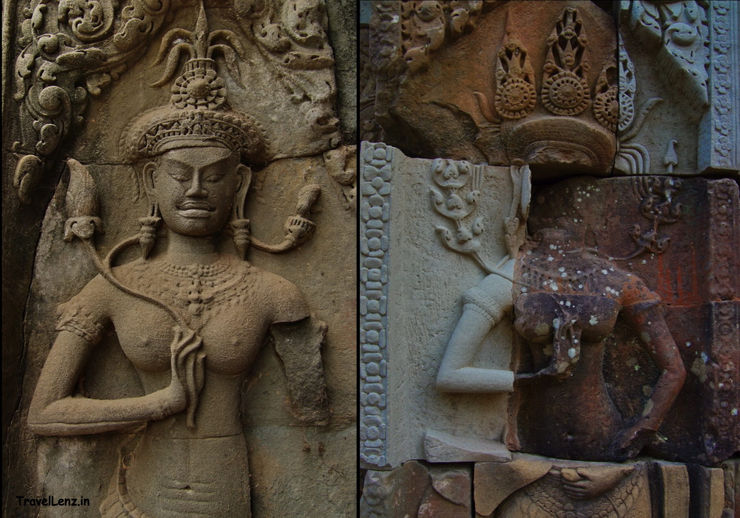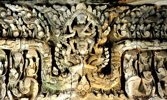 The other carved images we found were that of elegant Apsaras. The Apsaras had flower headgears, necklaces, waistbands, belts, and anklets.